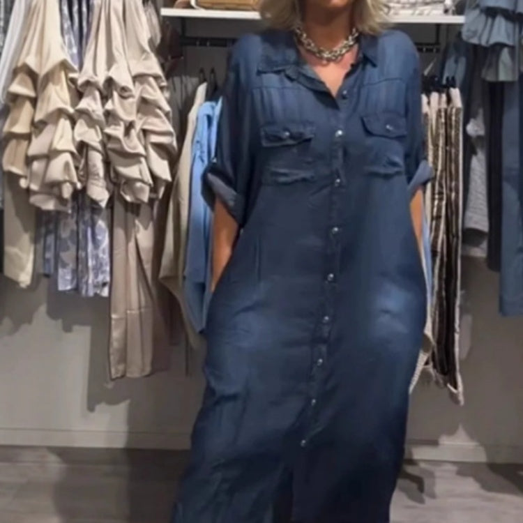 Summer Women's Fashion Casual Single-breasted Short Sleeve Dress