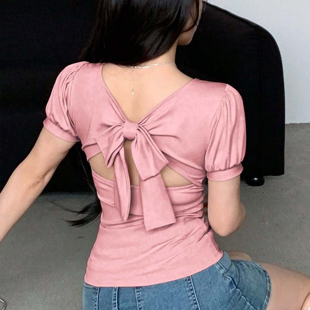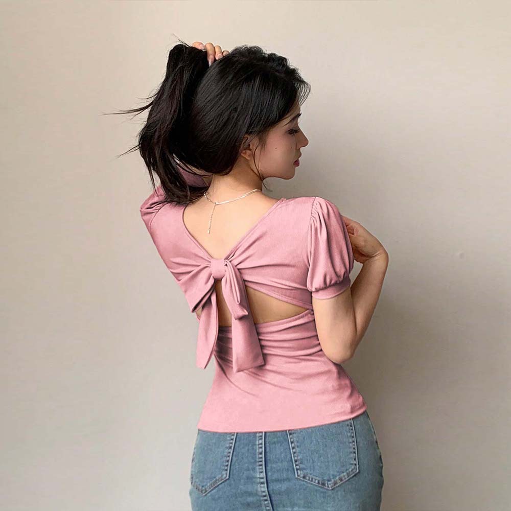 Sweet Girl Pure Desire Style U-neck Figure-flattering T-shirt