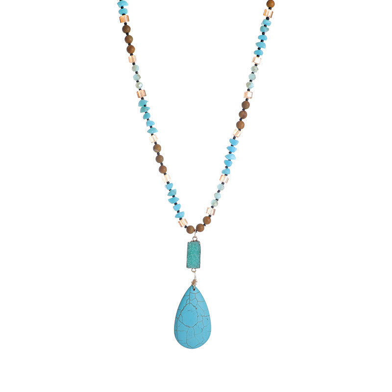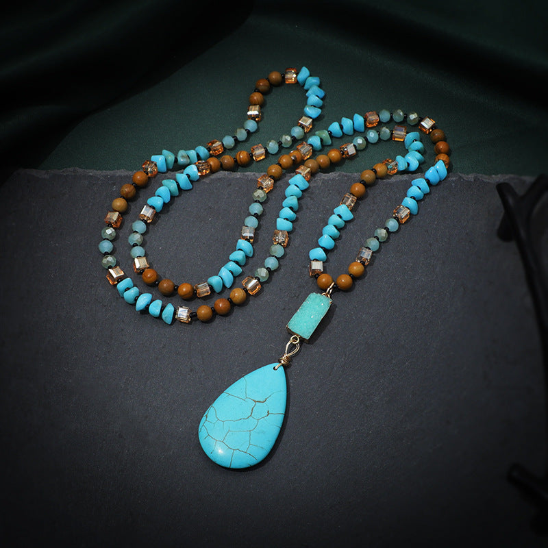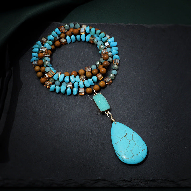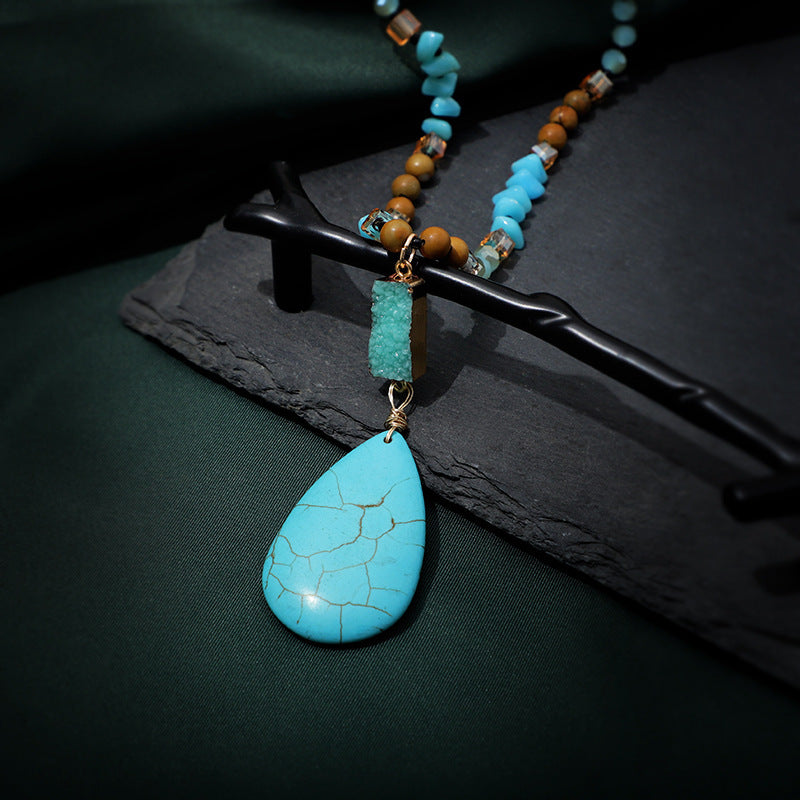 Turquoise Big Water Drop Imitation Mineral Pendant Fashion Necklace