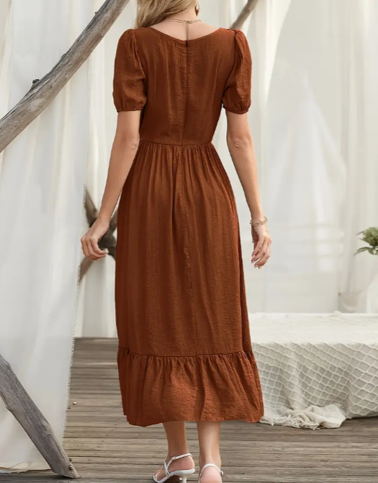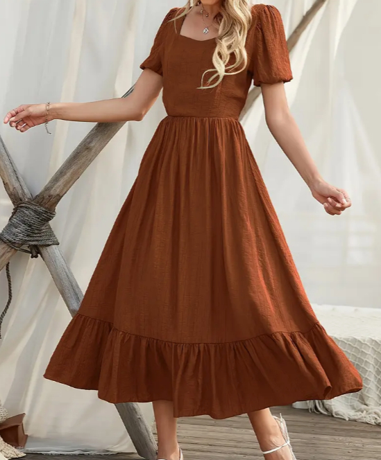 Unique Women's Ruffled Bubble Sleeve Long Skirt