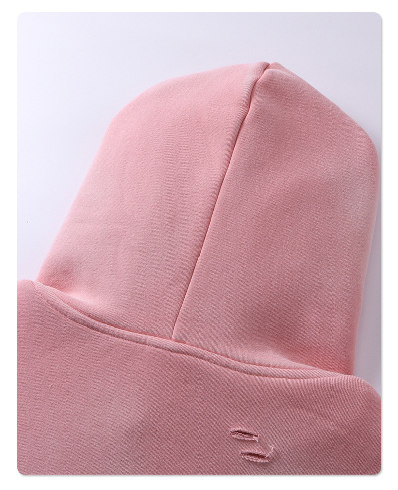 Washed And Worn Ripped Hooded Fleece Lined Sweater