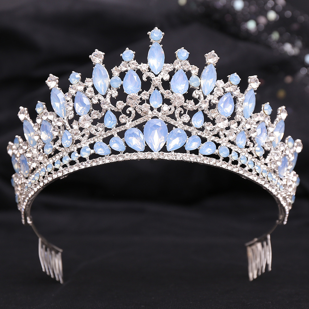 Wedding Birthday Headdress Crown Alloy Inlaid Protein Green Bright Crystal Bride