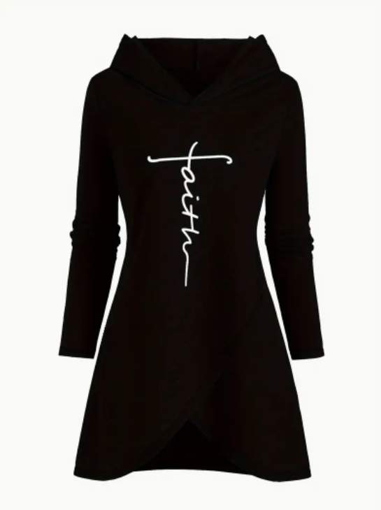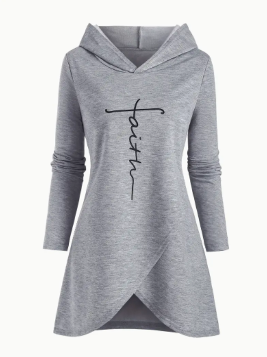 Women's Casual Letter Print Hoodie With Cross-Front Design