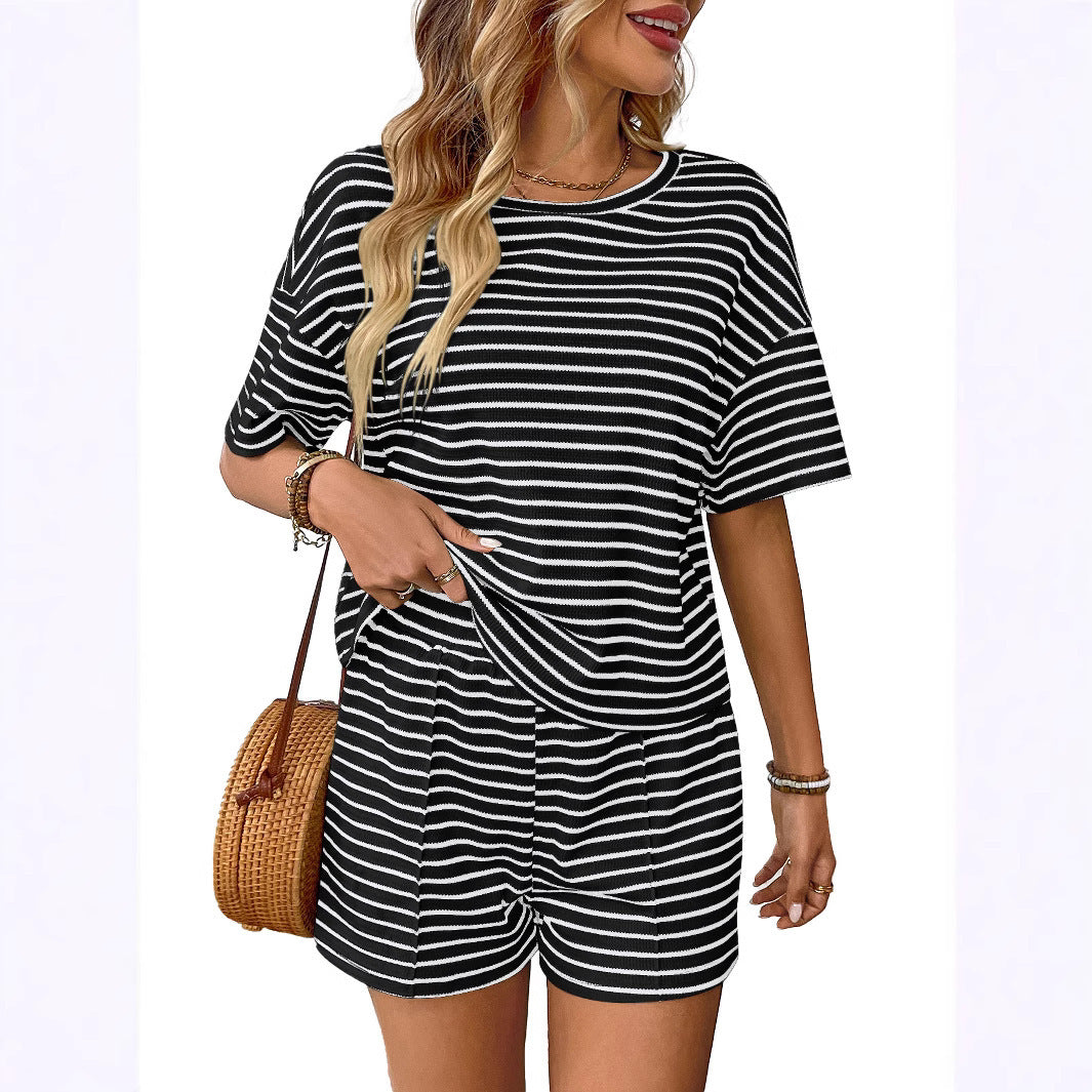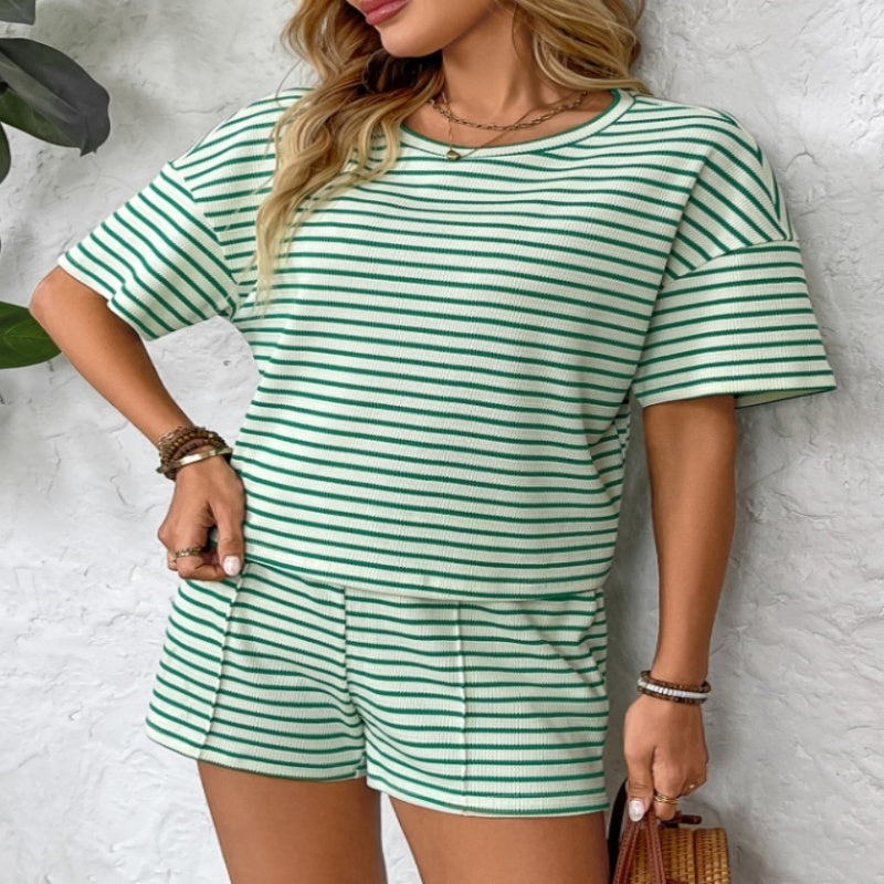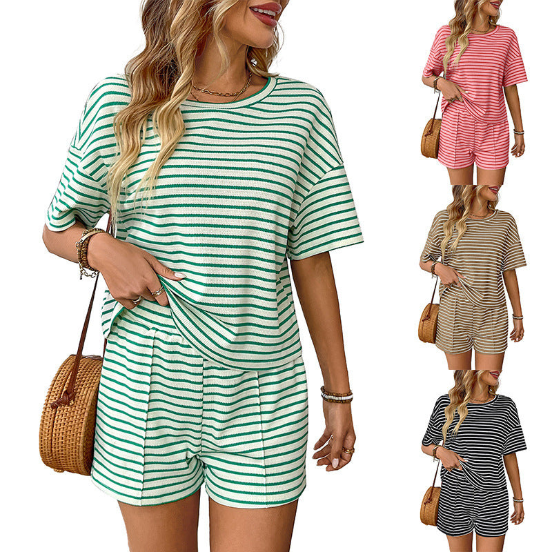 Women's Knitted Striped Fashion Casual Shorts Sports Suit