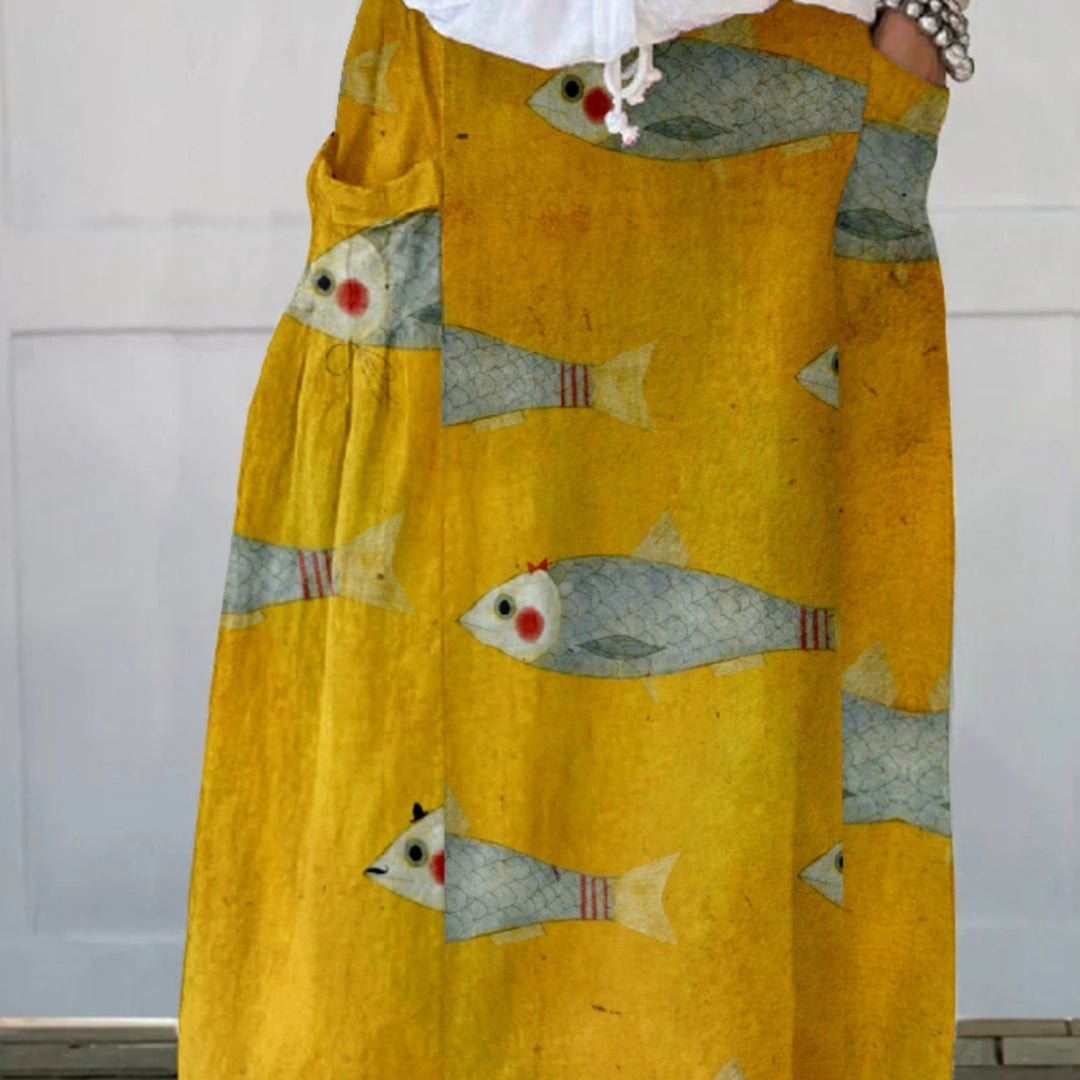 Women's Loose Versatile Pocket 3D Printed Midi Skirt