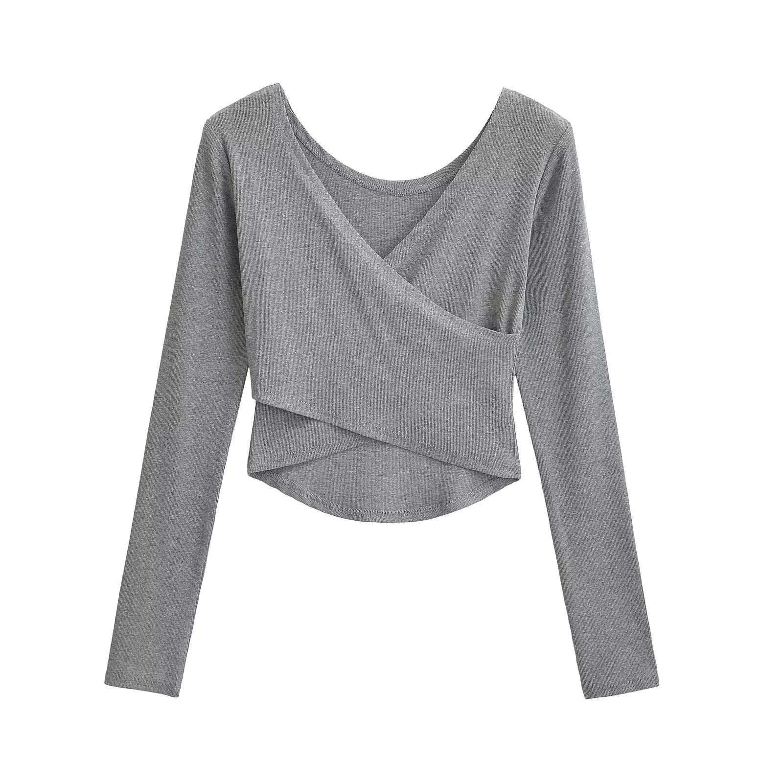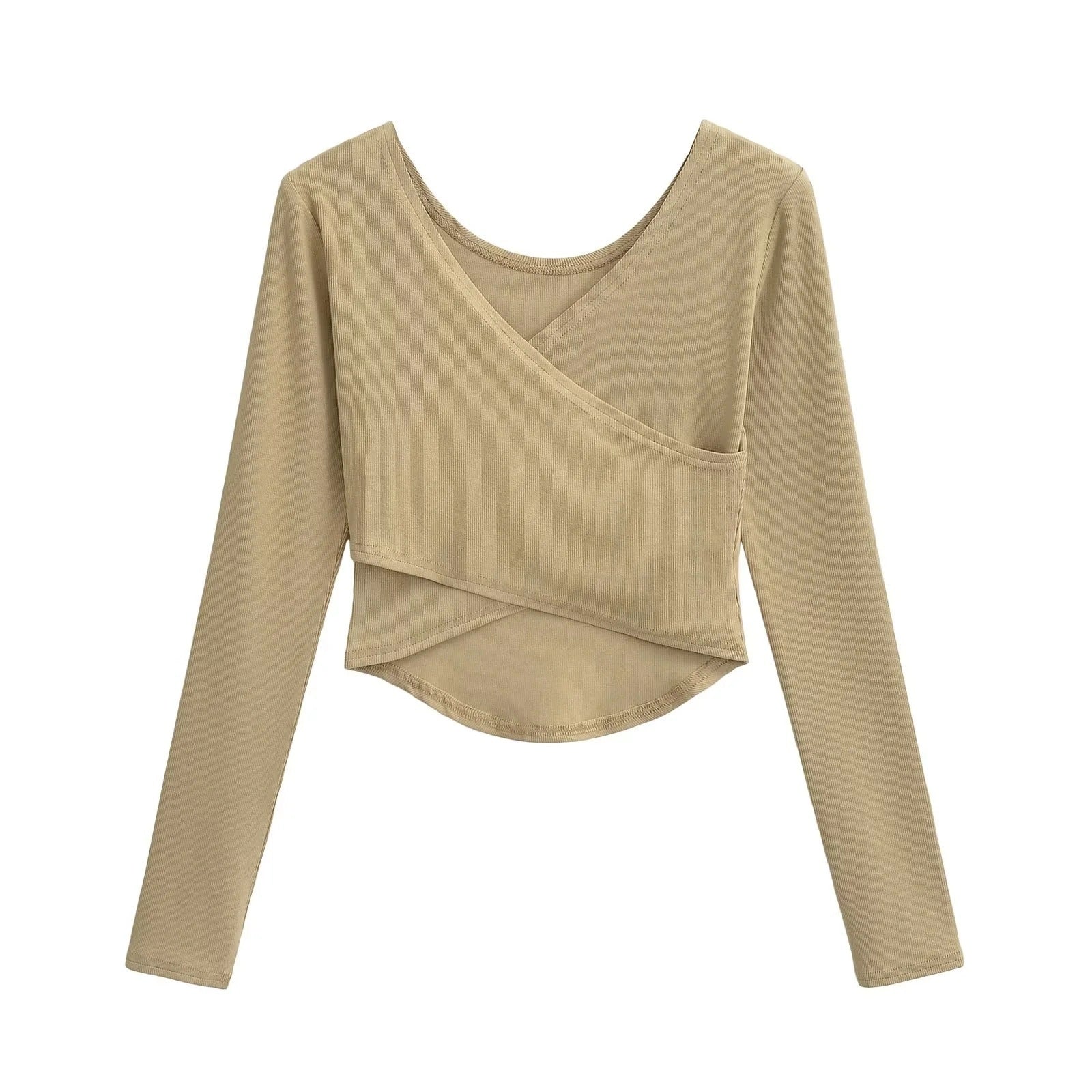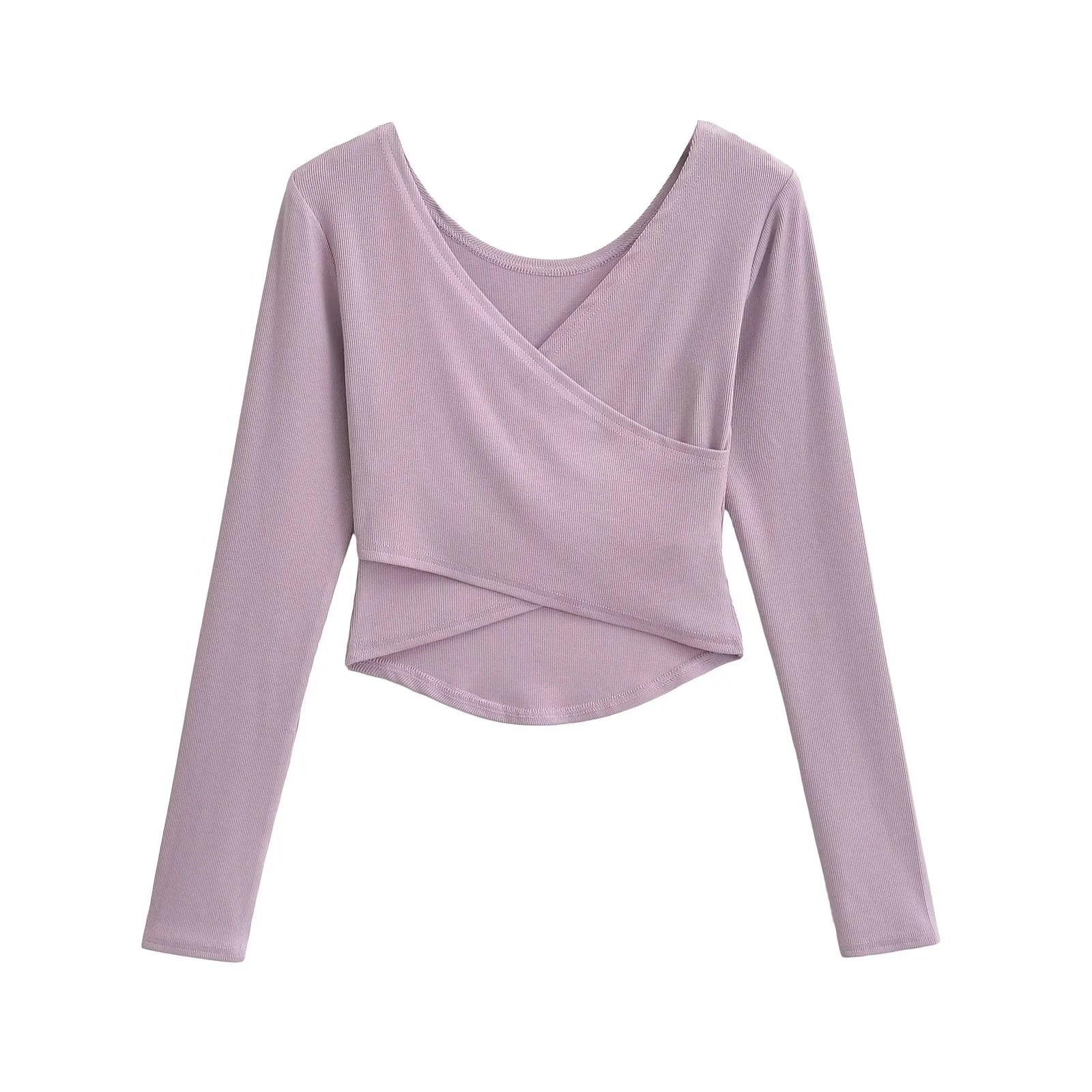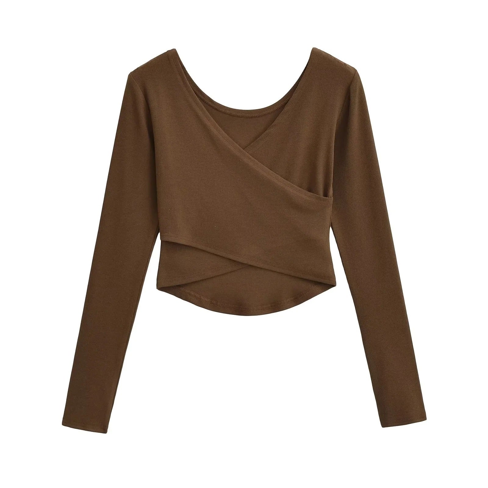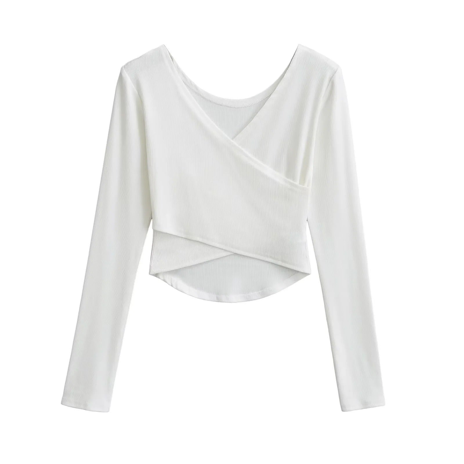 Women's Pure Desire Style Cross V-neck Wrapped Chest Long Sleeve