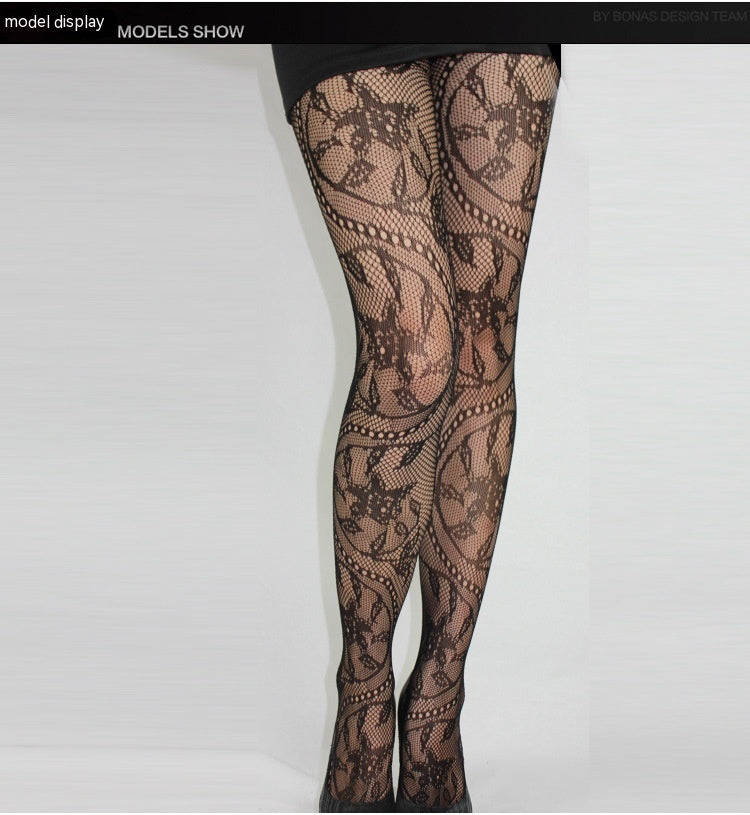 Yuan Retro Hollow Net Socks Large Medium And Small Mesh Panty-hose Totem Tornado Stockings